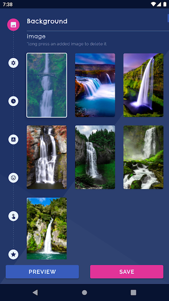 美しいものが好きなら、このアプリはあなたのためです。Waterfall Live Wallpaperには、ホーム画面やロック画面で使用できるさまざまな壁紙がたくさんあります。美しいHDの背景、素晴らしいアニメーションされた水の効果、さまざまなテーマがあります。色を変えたり、水の効果を使ったり、背景テーマを変更したりすることができます。写真フレームを追加したい人のための特別なセクションもあります。